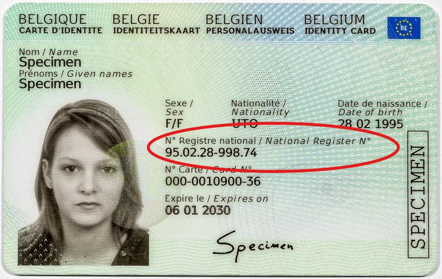 Vous trouverez ce numéro sur votre carte d’identité, comme indiqué dans l’exemple.
